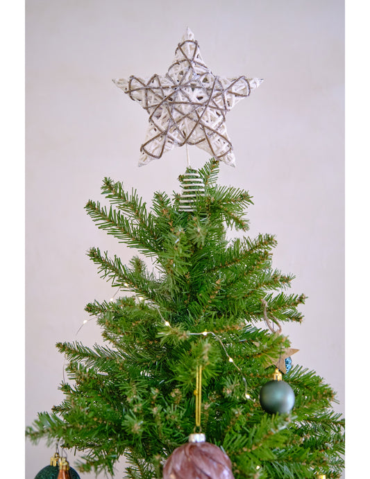 RazprodanoBleščeča zvezda iz ratana za vrh božične jelke 20 x 25 cm