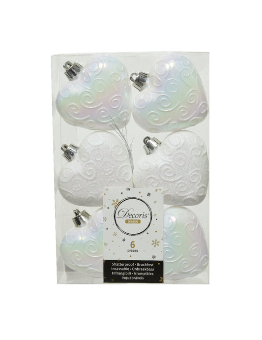 Razprodano6 visečih okraskov za božično drevo beli srčki 6 cm