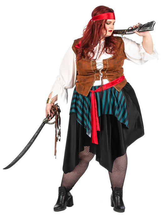 Za vas, dame in samo za vas, Vegaoo ponuja izjemno izbiro piratskih kostumov za ženske in seveda po nižji ceni! Tako boste vedno na vrhu med pustom in tudi na vseh modnih prireditvah. Iščete piratsko opremo? Brez panike, naša velika izbira izdelkov za zabave vas bo samo pomirila, naše zelo nizke cene pa vas bodo stopile od užitka. Brez nadaljnjega odlašanja začnite iskati obleko, ki jo želite. Ne glede na to, ali ste seksi, glamurozni ali klasični, vas bodo naše piratske obleke in popolni piratski kostumi za ženske zagotovo navdušili! Zagotavljamo vam, da so naši kompleti pripravljeni za pošiljanje in na voljo v številnih velikostih. Na naši spletni strani so na voljo ženski piratski kostumi velikih velikosti, kot je rdeča gusarska obleka velikosti XXL in dolga obleka s korzetom, ki je na voljo v XXL in XXXL.