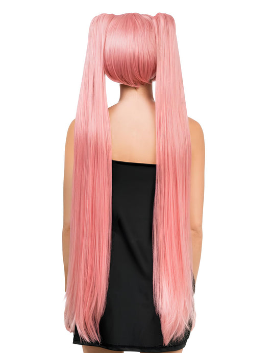 NovoLuksuzna cosplay lasulja z dolgimi pastelnimi roza kitkami za odrasle