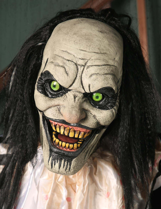 PromocijaAnimirani dekoracija zastrašujoča klovn z visečim otrokom z gibi in lučmi 2.15m