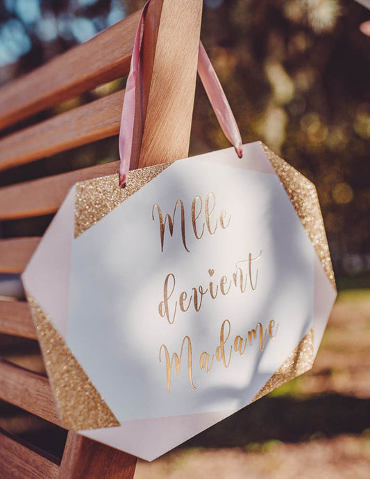 PromocijaMiss kartonski znak postane madame rose bela zlata 25 x 16,5 cm
