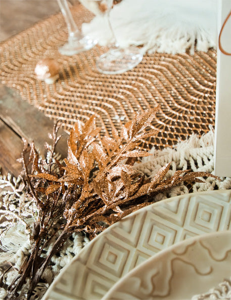 Razprodano6 vejic na rožnato zlatih bleščečih steblih 18 cm za okras