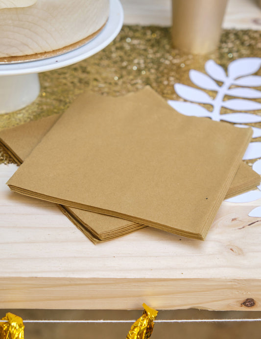 16 serviettes en papier pirate kraft et dorure 26 cm tête de pirate