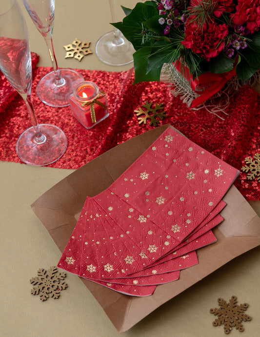 Razprodano10 majhnih rdečih papirnatih prtičkov z zlatimi kosmiči, 25 x 25 cm cm Božič