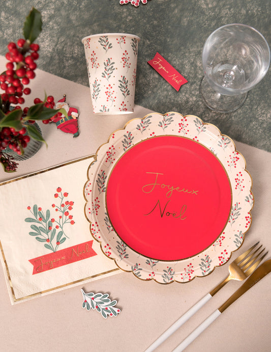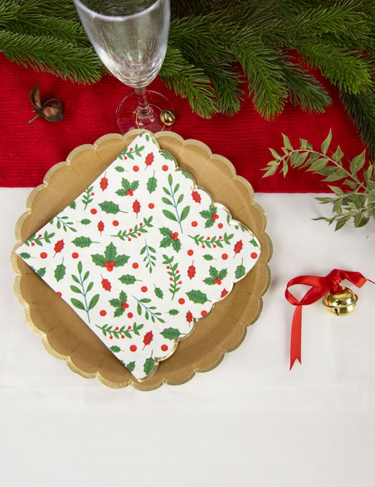 Razprodano16 papirnatih prtičkov z nazobčanim vzorcem, božični motiv holly, 33 x 33 cm zlati rob