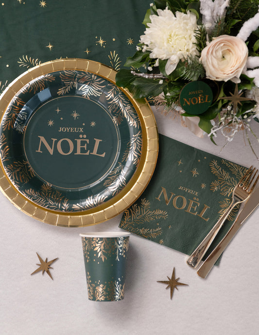 Razprodano10 zelenih in zlatih božičnih papirnatih prtičkov, 33 cm, Vesel božič