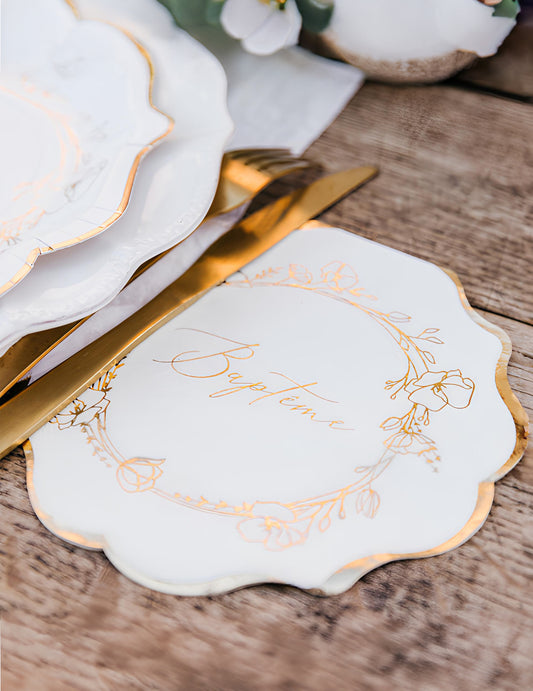 Razprodano16 belih in zlatih papirnatih prtičkov z nazobčanim vzorcem 33 x 33 cm