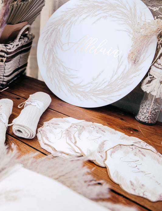 Razprodano16 papirnatih krstnih prtičkov z vzorcem pampas trave in bombažnega cvetja, 32 x 32 cm cm zlata