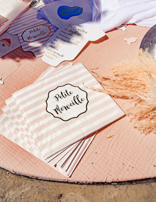 Razprodano16 majhnih roza črtastih papirnatih prtičkov, 33 x 33 cm zlata