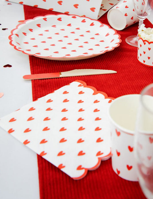 RazprodanoNovo16 papirnatih prtičkov z nazobčanim vzorcem in majhnimi srčki, 33 x 33 cm