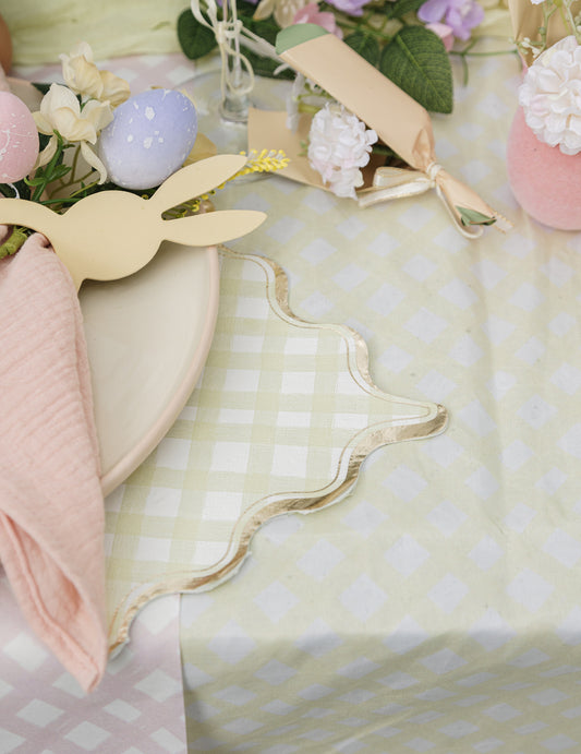 Razprodano16 papirnatih prtičkov v lila, roza, rumeni, zeleni in zlati barvi, 33x33 cm, s karo vzorcem