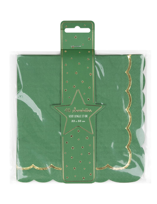 Razprodano16 nazobčanih zeleno-zlatih papirnatih prtičkov, 33 x 33 cm za božič