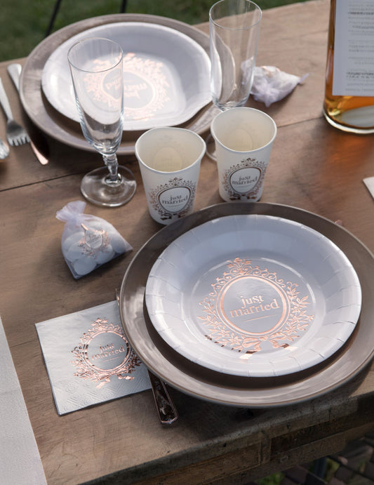 Razprodano20 majhnih prtičkov Just Married v beli in rožnato zlati barvi, 25 x 25 cm cm šik poroka