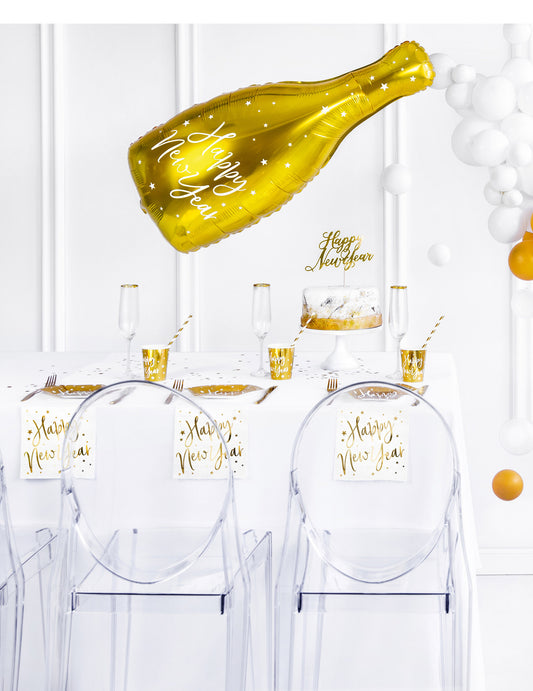 Razprodano20 belo-zlatih papirnatih prtičkov z napisom "Srečno novo leto", 33 x 33 cm cm zvezda