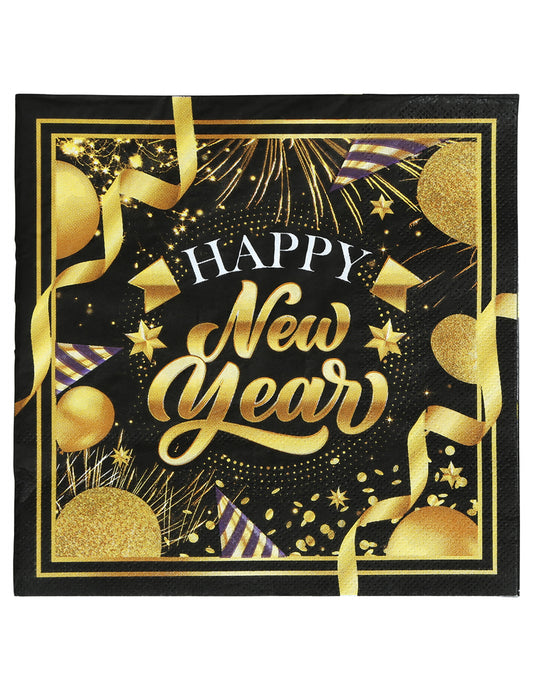 Razprodano20 črno-zlatih papirnatih prtičkov z napisom "Srečno novo leto", 33 x 33 cm