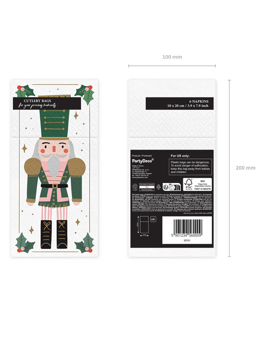 Razprodano6 papirnatih prtičkov/vrečk za jedilni pribor z motivom Hrestača 10 x 20 cm
