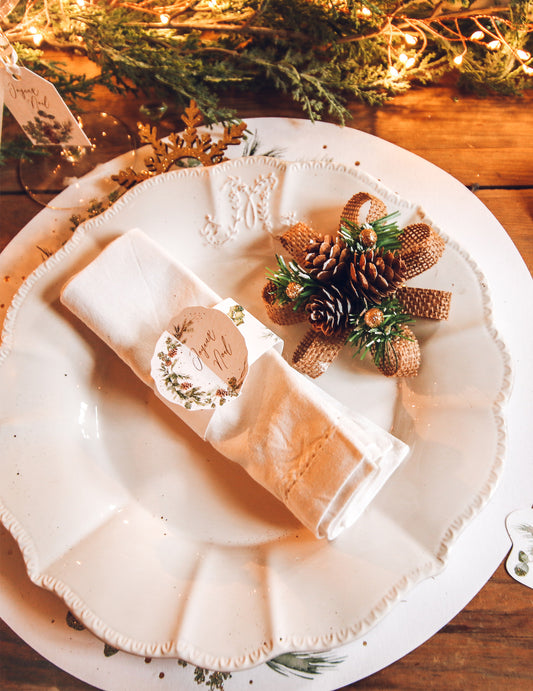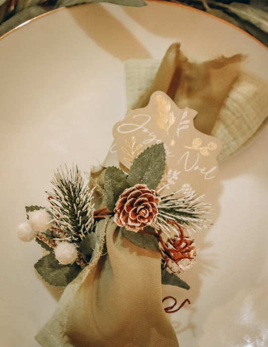 Razprodano8 obročkov za prtičke Merry Christmas Enchanted Forest, belih in zlatih