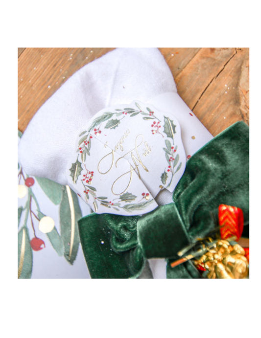 Razprodano8 božičnih botaničnih zeleno-sivih obročkov za prtičke, Vesel božič