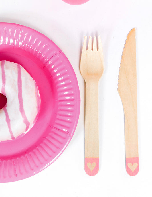 18 couverts en bois rose avec cœur 16 cm jetables