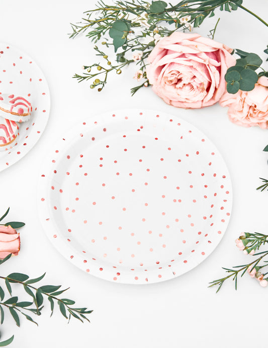 6 petites assiettes en carton blanches et pois rose gold 18 cm pour table