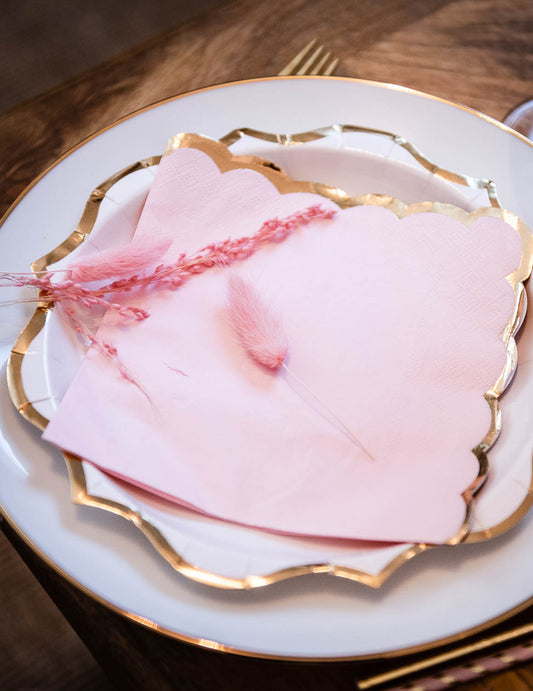 16 pudrasto roza prtičkov z zlatimi nazobčanimi robovi, 33 x 33 cm papir