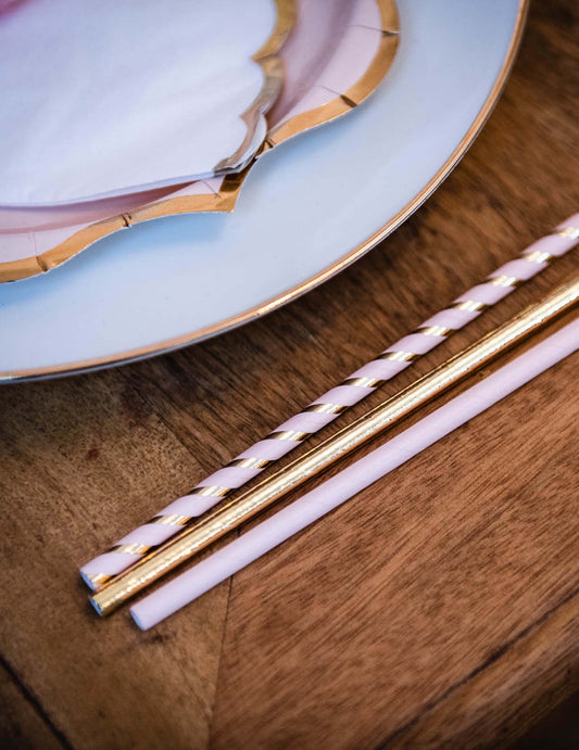 22 kartonskih slamic v pudrasto roza in zlati barvi 19,5 cm za rojstni dan