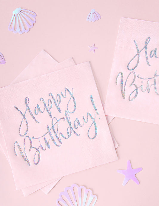 16 bleščeče roza papirnatih prtičkov za praznovanje, 33 x 33 cm Vse najboljše za rojstni dan!
