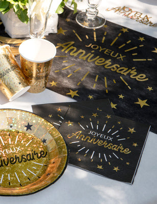 10 črno-zlatih papirnatih prtičkov za rojstni dan, 33 x 33 cm z zvezdicami