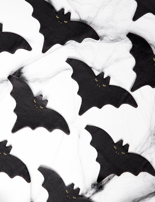 Razprodano20 črno-zlatih papirnatih prtičkov v obliki netopirjev, 16 x 9 cm za noč čarovnic