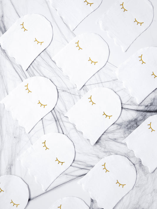 20 belih in zlatih papirnatih prtičkov z motivom duhov velikosti 11 x 14 cm za noč čarovnic
