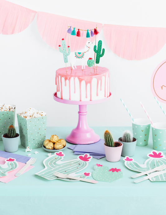 20 papirnatih prtičkov v obliki kaktusa v barvi mete in fuksije