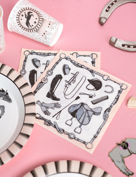 20 papirnatih prtičkov s konjeniško tematiko, 33 x 33 cm roza in siva