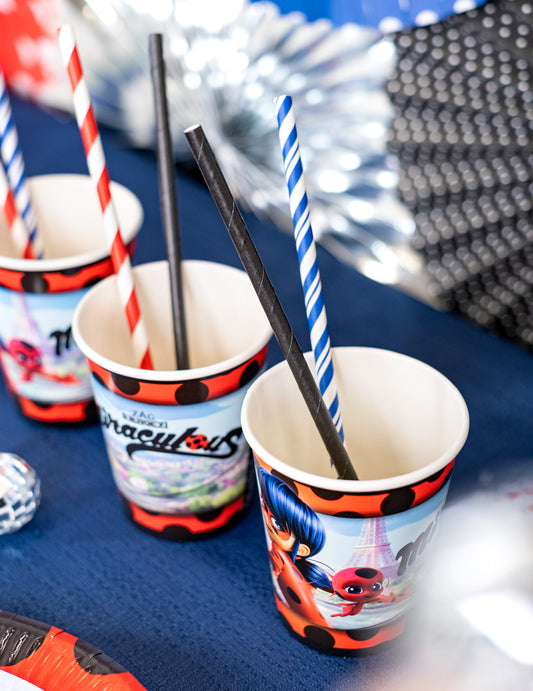 V tem izboru rojstnodnevne posode za enkratno uporabo boste našli vse, kar potrebujete in še več za kakovostno postavitev praznične mize. Klasični plastični krožniki, skodelice in jedilni pribor za enkratno uporabo so seveda vključeni, a ne samo to! Prinesite lepe podrobnosti na vašo mizo z elegantnimi slamicami, osrednjim kosom za rojstni dan ali celo z dežniki. Če imate v mislih temo za svojo dekoracijo, pridite in odkrijte našo rojstnodnevno posodo za enkratno uporabo. Za dekličin rojstni dan se odločite za dekoracijo Frozen, Moana, Peppa Pig ali celo Winx. Če želite ustvariti okras za fantov rojstni dan, raje poglejte naše namizne dekoracije iz Vojne zvezd, Spidermana ali celo Batmana.