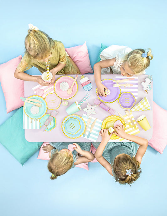 V tem izboru rojstnodnevne posode za enkratno uporabo boste našli vse, kar potrebujete in še več za kakovostno postavitev praznične mize. Klasični plastični krožniki, skodelice in jedilni pribor za enkratno uporabo so seveda vključeni, a ne samo to! Prinesite lepe podrobnosti na vašo mizo z elegantnimi slamicami, osrednjim kosom za rojstni dan ali celo z dežniki. Če imate v mislih temo za svojo dekoracijo, pridite in odkrijte našo rojstnodnevno posodo za enkratno uporabo. Za dekličin rojstni dan se odločite za dekoracijo Frozen, Moana, Peppa Pig ali celo Winx. Če želite ustvariti okras za fantov rojstni dan, raje poglejte naše namizne dekoracije iz Vojne zvezd, Spidermana ali celo Batmana.