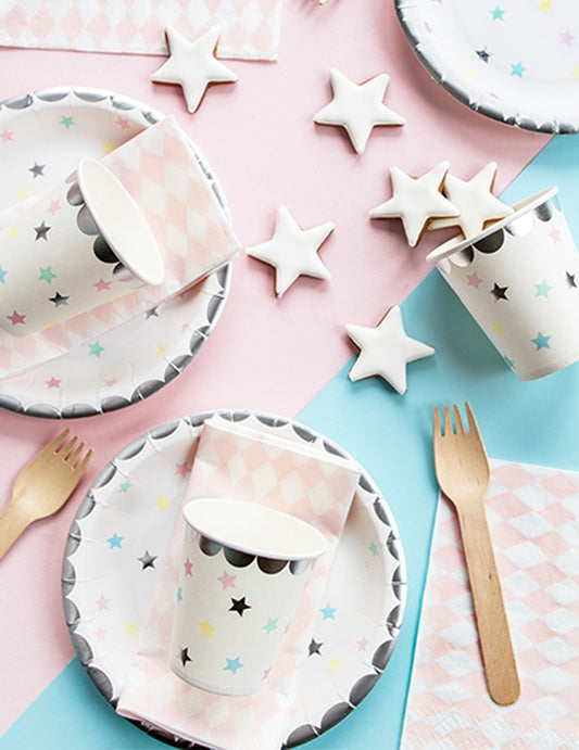 Razprodano6 zvezdastih srebrnih pastelnih kartonskih kozarčkov s prostornino 180 ml