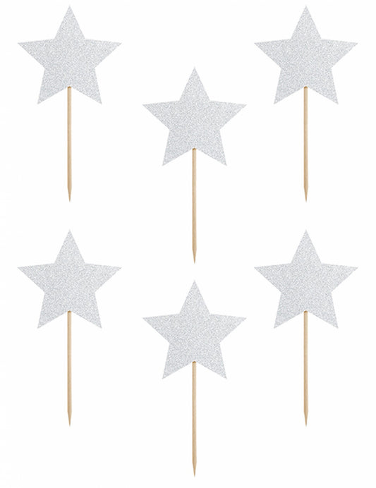 6 srebrnih bleščečih okraskov za torto z zvezdicami na trnih 11,5 cm za rojstni dan