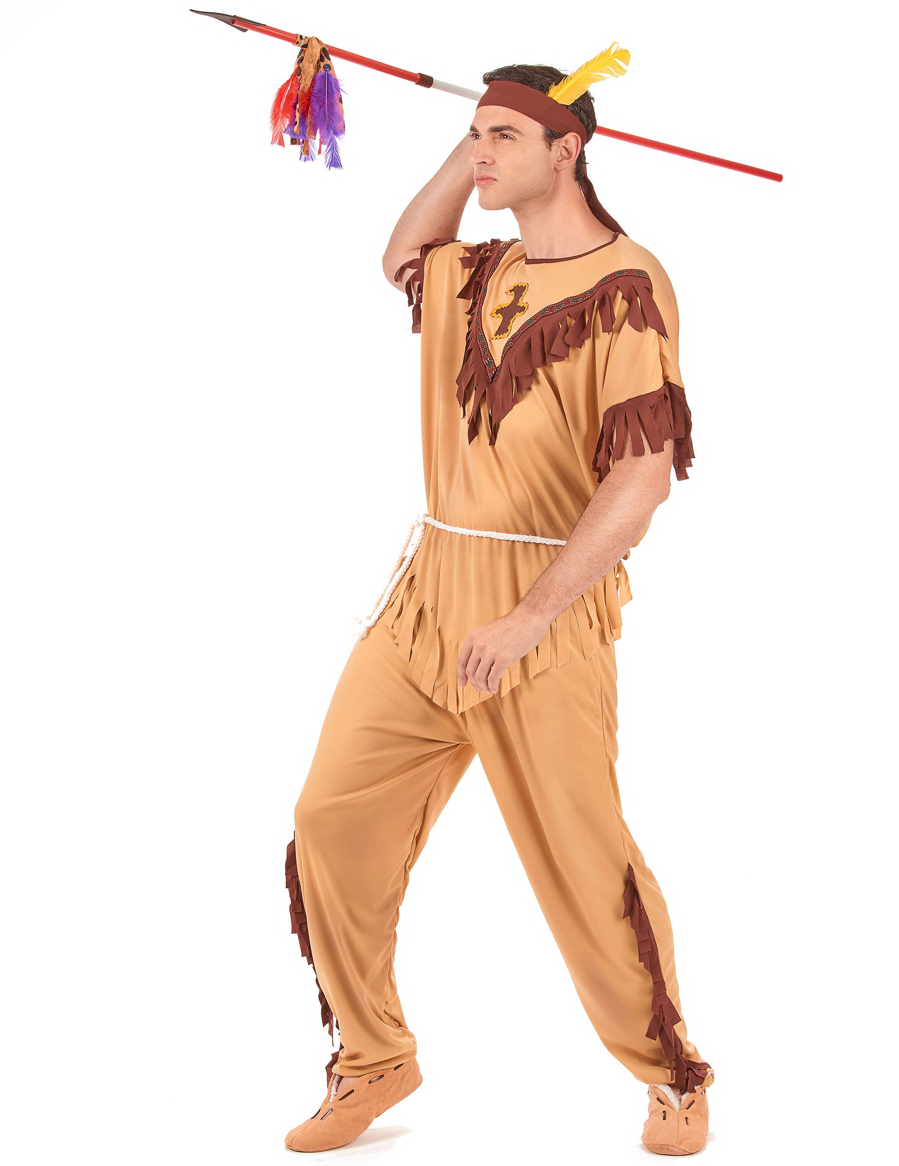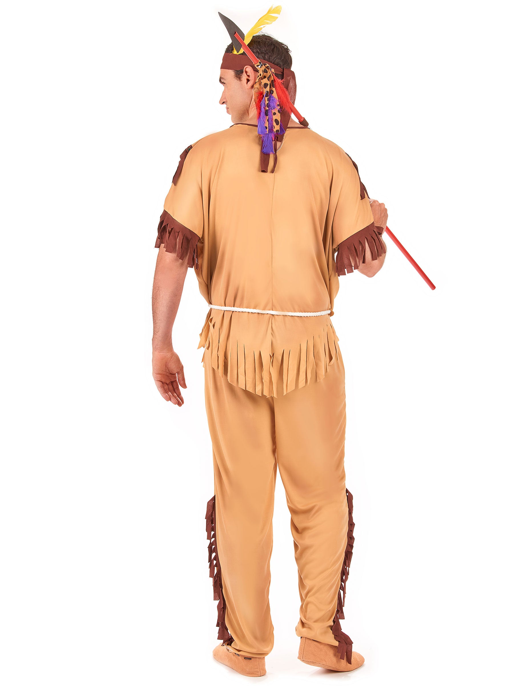Ta indijski kostum je namenjen moškim in vključuje majico, hlače, trakove za glavo in pas (Lance in čevlji niso vključeni). Majica s kratkimi rokavi je bež s temno rjavimi obrobji. Dno majice je opremljeno tudi z bež obrobji. Vaša velikost je lahko ukrivljena z belo vrvico, ki drži vlogo pasu. Hlače so dolge z elastično velikostjo in okrašene z bež obrobji na dnu. Končno bo vaše čelo čudovito okrašeno s priloženo peresno pasico. Bodite popoln Apache ob pustnem ali kostumskem večeru!