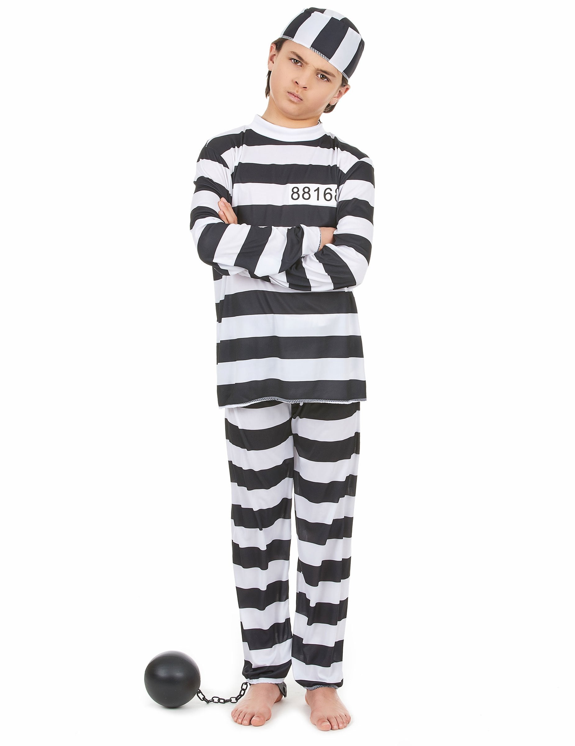 Ta zapornik za otroke je sestavljen iz elastičnega višine z dolgimi rokavi črno -belimi z 881688 registracijo na prsih. Obleka vključuje tudi elastične hlače na pasu in ujemajoč se klobuk (žoga ni vključena). Ta lahek in udoben kostum bo idealen za karneval, šov ali kateri koli drug prikrit dogodek.