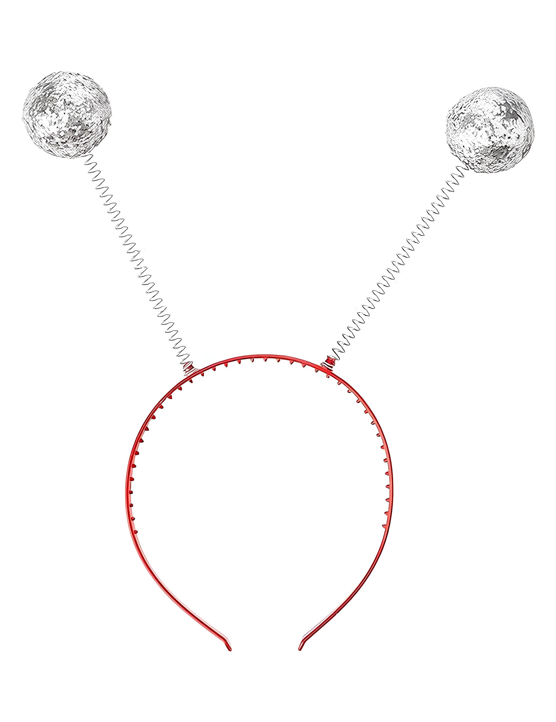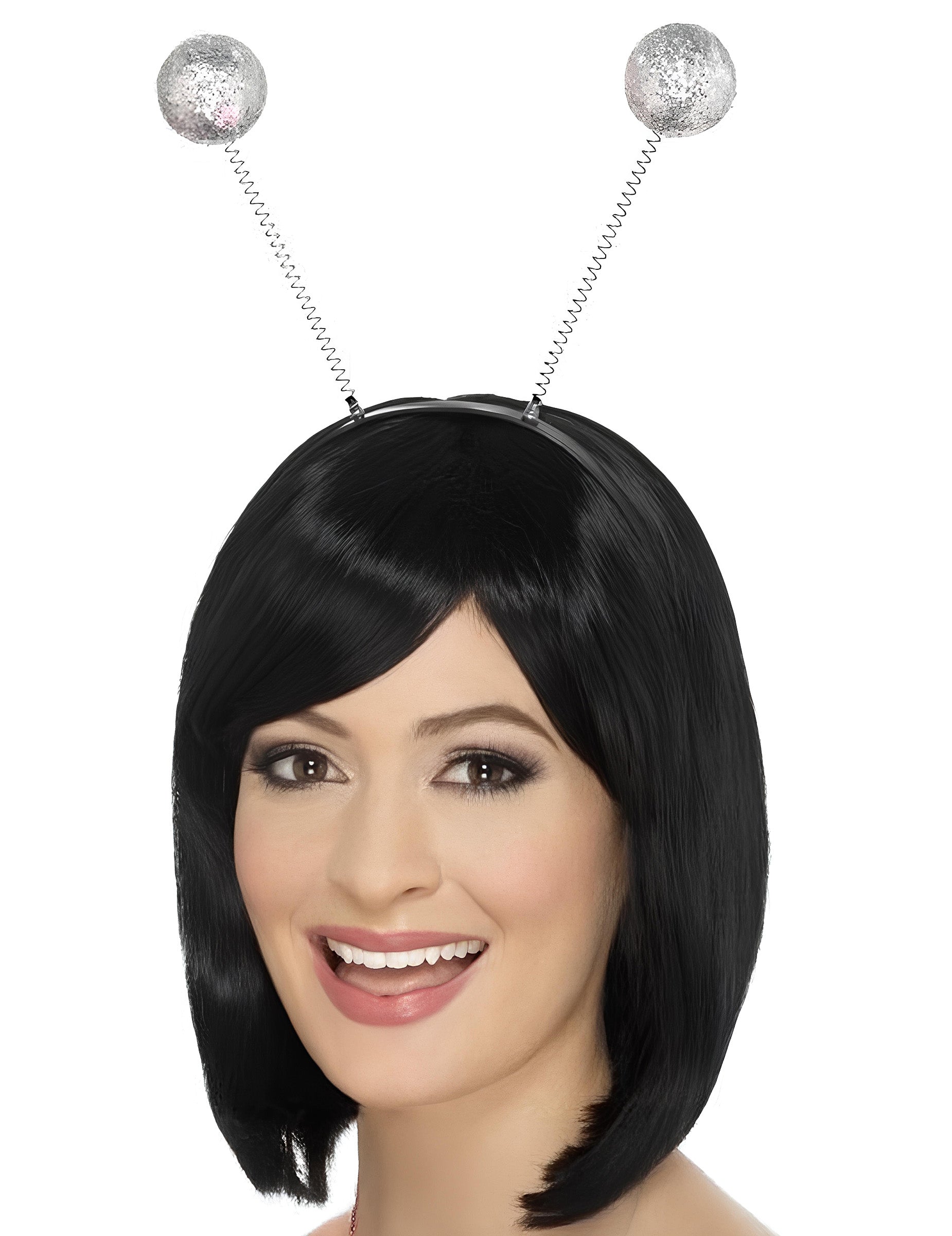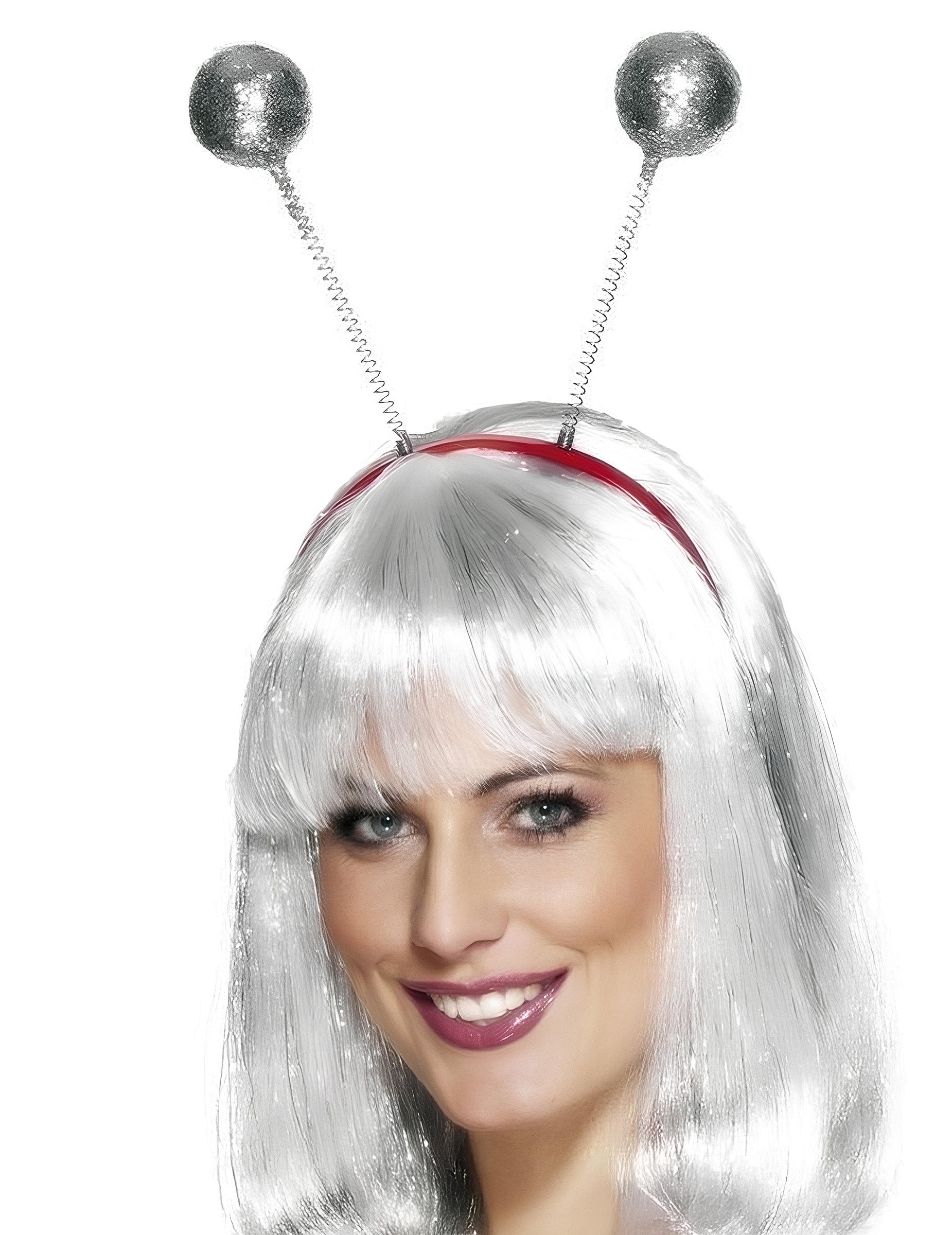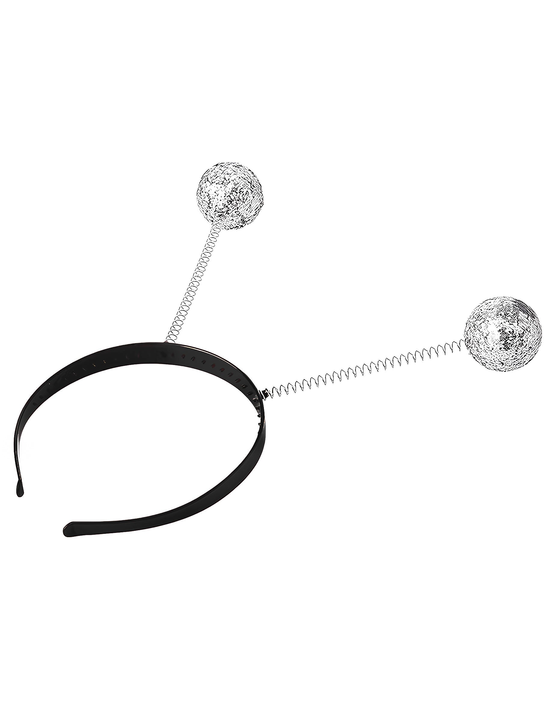 Plastični trak za glavo z dvema kovinskima vzmeti, ki se končata v srebrnih kroglicah, pokritih z bleščicami. Z vsakim gibanjem se kroglice iskrijo in premikajo za zabaven učinek. Poslana barva je naključna: trak za glavo je lahko črn ali rdeč. Idealno za dokončanje kostuma ali dodajanje prazničnega dotika zvečer.