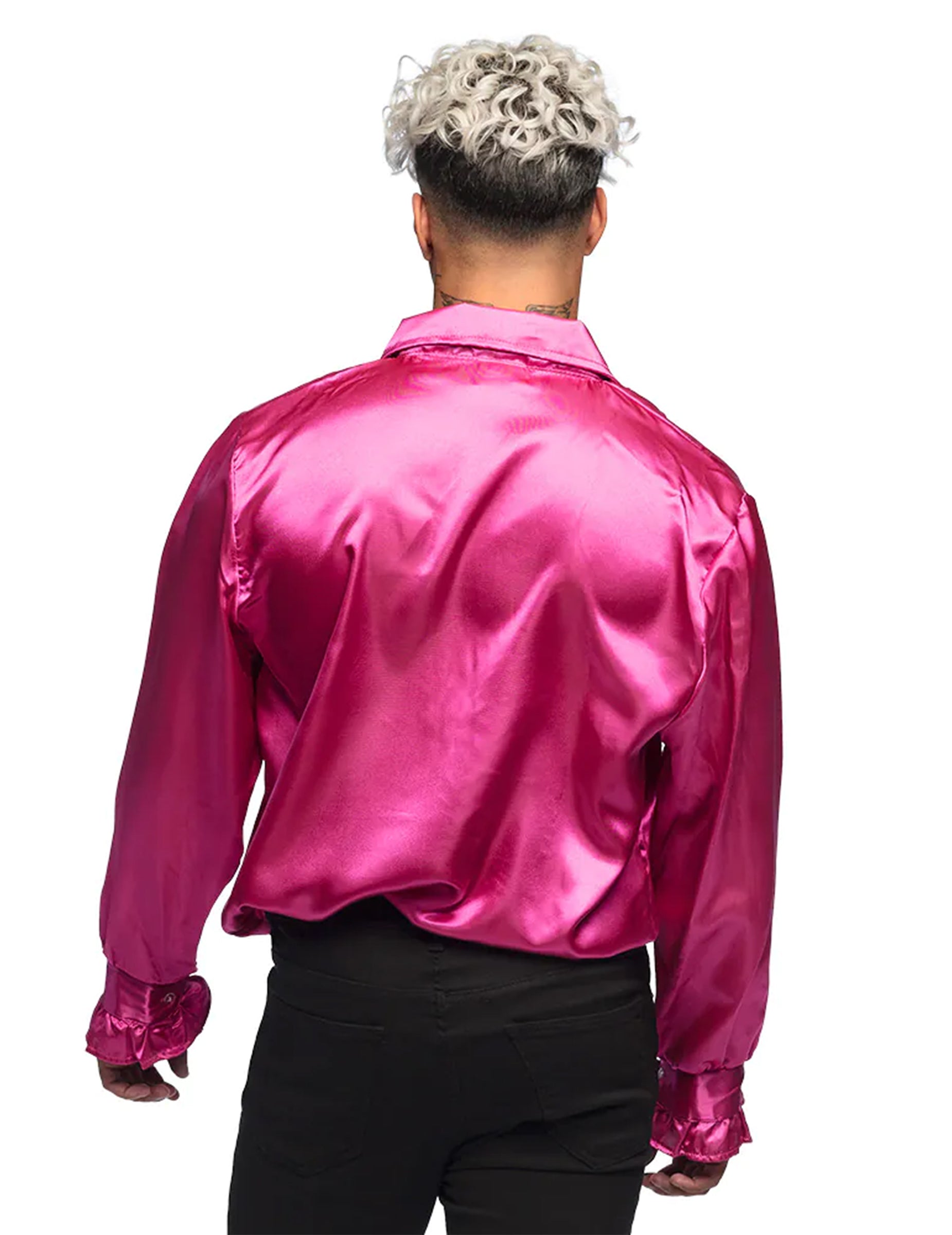Ta disko preobleka za moške je sestavljena iz satenaste rožnate majice z rahlo razgibanimi rokavi, gumbi in naboji. Ta kostum bo idealen za vžig prizora za diskoteko!