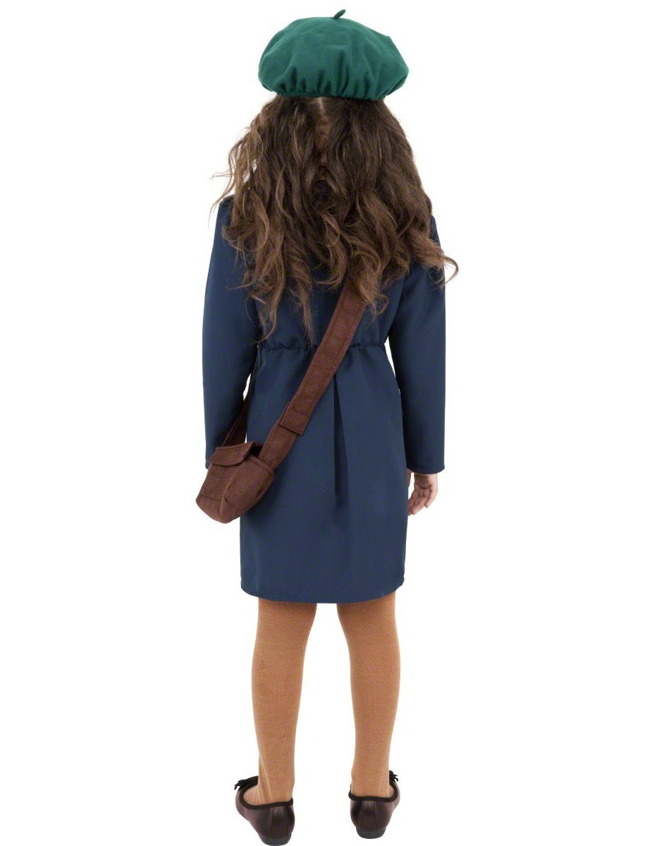 Ta šolarka, preoblečena iz štiridesetih let prejšnjega stoletja za dekle, vključuje nočno obleko tunike, zeleno beret in majhno torbo iz kostanjevega filca. Obleko boste prejeli z očarljivim vrat Claudine, kleščem na sprednji strani (čevlji in hlačne nogavice niso vključeni). Ta kostum bo kot nalašč za vaše prikrite ali tematske večere.