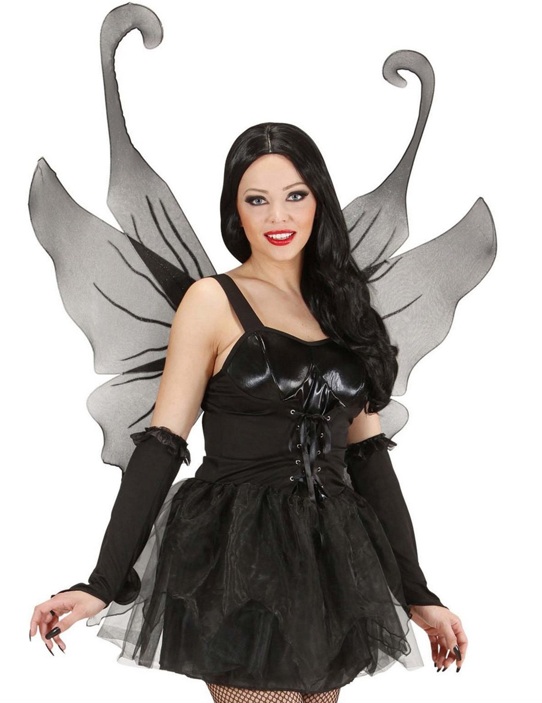 Ta črna pailetična krila za odrasle merijo približno 76 x 107 cm. Sestavljajo jih iz črne elastične tančice, raztegnjene na žicah, ki tvorijo obris kril. Ta krila bodo nošena za hrbtom z dvema elastičnima pasoma. Ta dodatek bo kot nalašč za dokončanje kostuma za noč čarovnic ali katerega koli drugega prikritega dogodka. Avtorske pravice Widmann Srl. Avtorske pravice Widmann Srl