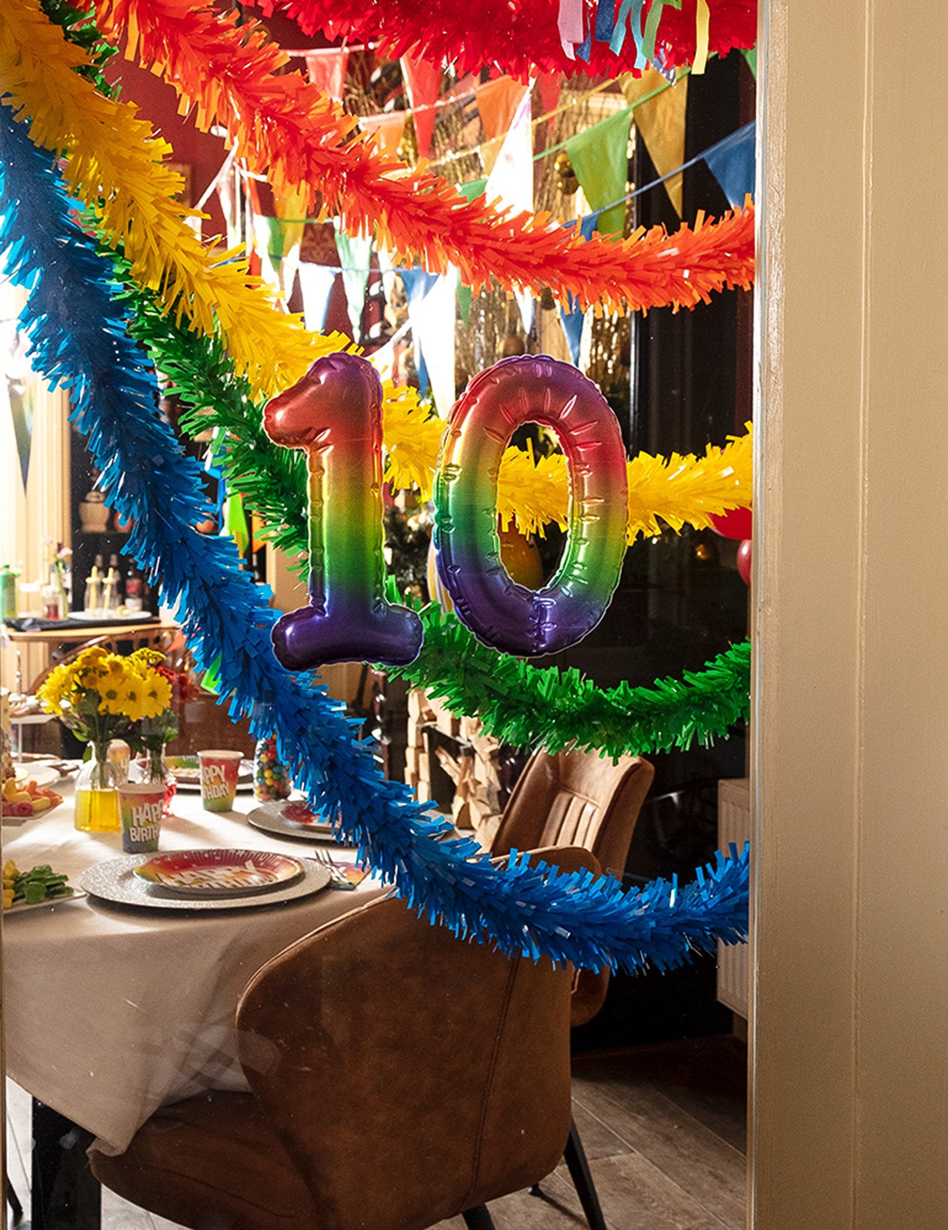 Ta girlanda iz PVC-ja je oranžne barve in meri približno 10 metrov v dolžino. Obdelana je za odpornost proti ognju. Ta dodatek bo idealen za okrasitev vaše dvorane ali zunanjega prostora med zabavo v kostumih ali tematskim dogodkom.