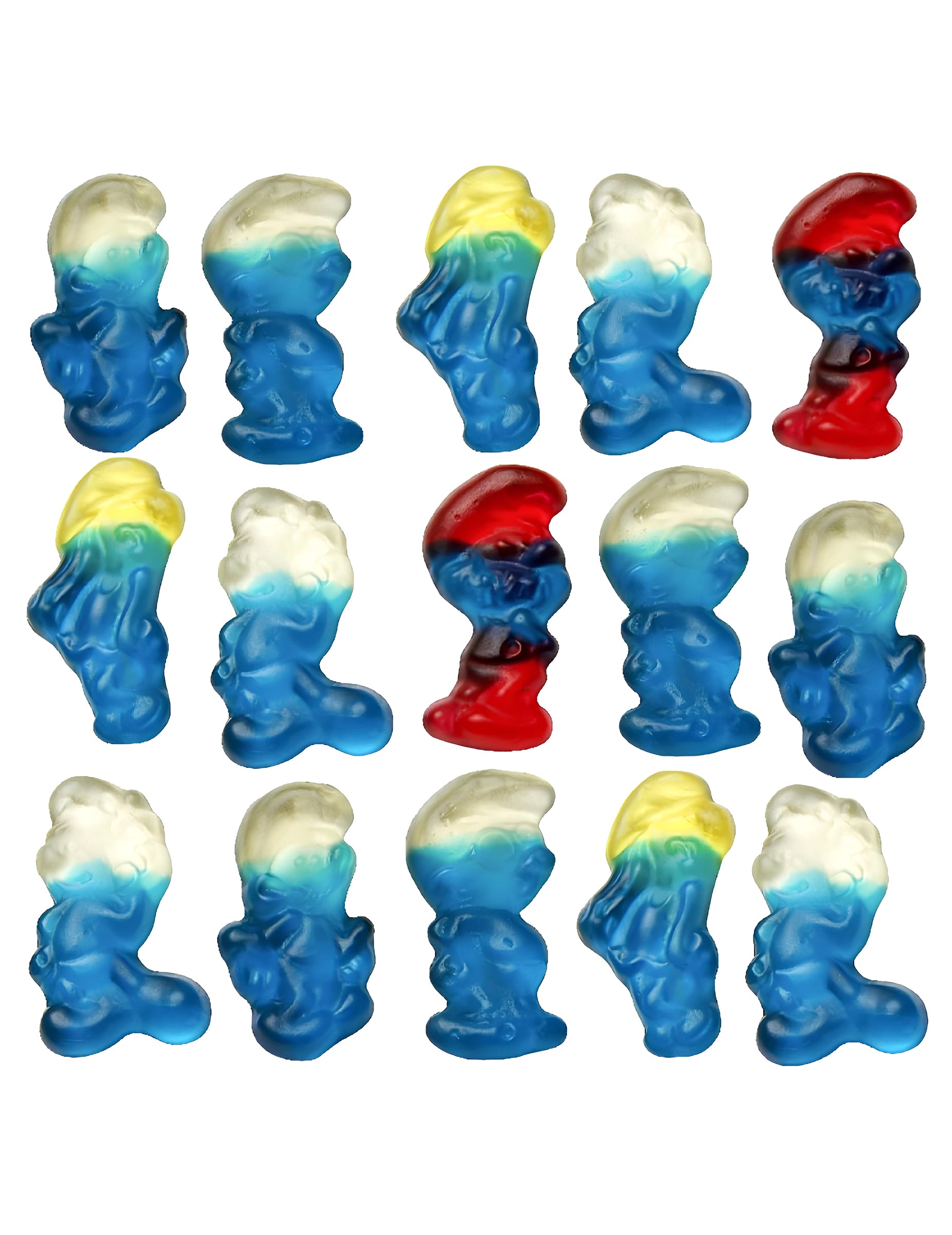 120 g vreča šmarnic, sladkarija z nepomembnim okusom in barvo, povezano s podobo likov, ki so jih oboževali mlade in stare. Sestavine: glukozni sirup; sladkor; želatina; dekstroza; Zakisljična: citronska kislina; aroma; Barve: Carmine, patent Blue V, Luteine; Previšanja: beli in rumen čebelji vosek, Carnauba vosek. Držite se toplote in vlažnosti.