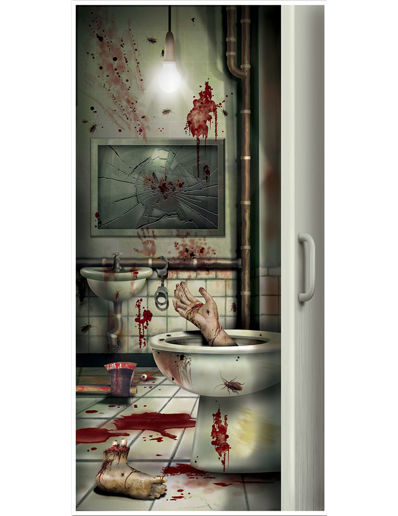 Ta dekoracija vrat predstavlja krvno kopalnico s sekiro, sledi krvi, eno roko, eno nogo in meri 76,2 cm x 1,52 m. Idealno bo za oblačenje vaših vrat na noč čarovnic.