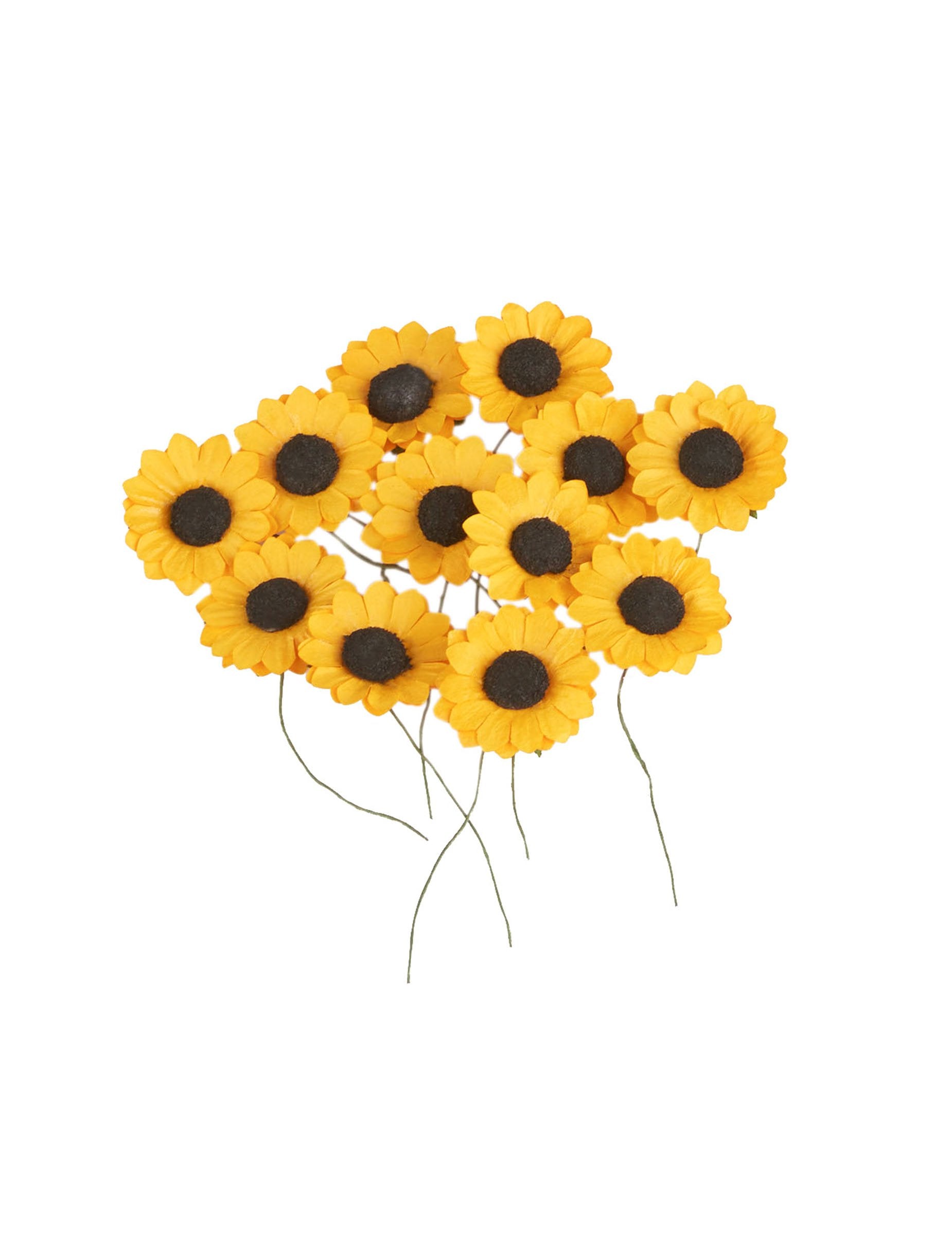 Ta set 12 rumenih travniških cvetov s premerom 2,5 cm je idealen za vaše ustvarjalne projekte. Ti mini okrasni sončnični cvetovi bodo vaši praznični dekoraciji dodali sončen in naraven pridih.
