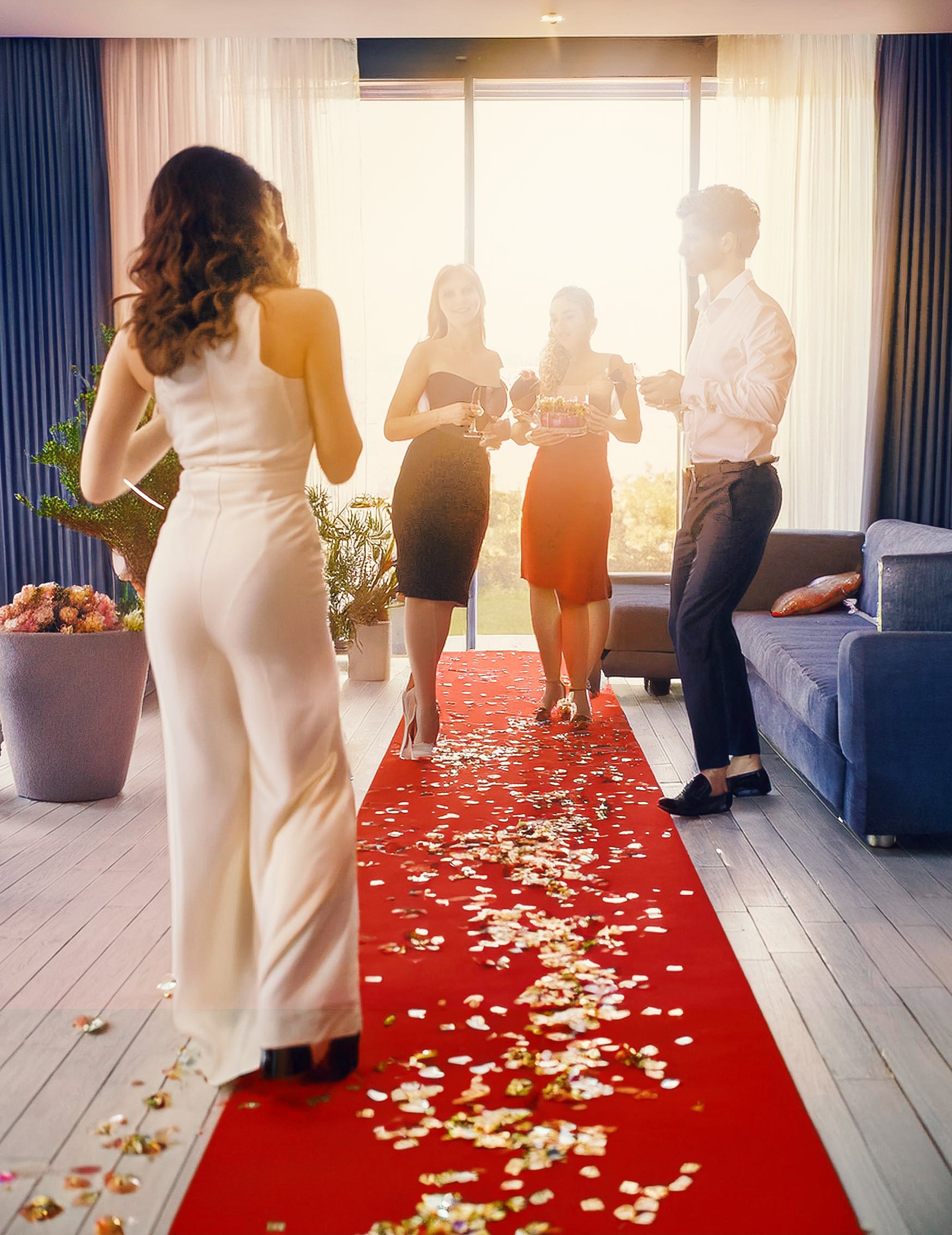 Ta rdeča preproga ima dimenzijo 450 x 60 cm. Priloži se z uporabo priloženega lepilnega traku. Zelo tanka, je enojna uporaba. Ta rdeča preproga bo kot nalašč za vaše kino ali hollywoodske tematske zabave. Sestava izdelka: netkana tkanina (60% pp + 40% kalcijev karbonat) + dvostranski lepilni trak (100% papir)