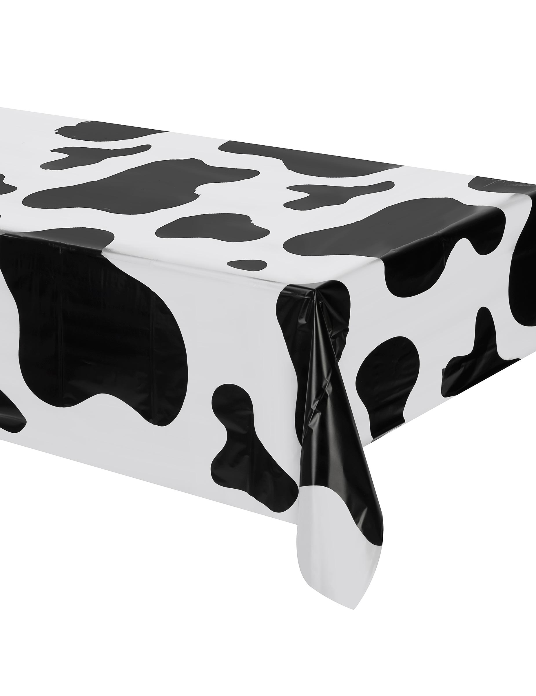 Oblecite svojo mizo s to plastično prtom velikih dimenzij 127 x 274 cm. Z dvobarvnim kravjim potiskom v črni in beli barvi bo ta dodatek popoln za popestritev vaše dekoracije na rojstnodnevni zabavi ali tematski zabavi v podeželskem stilu.
