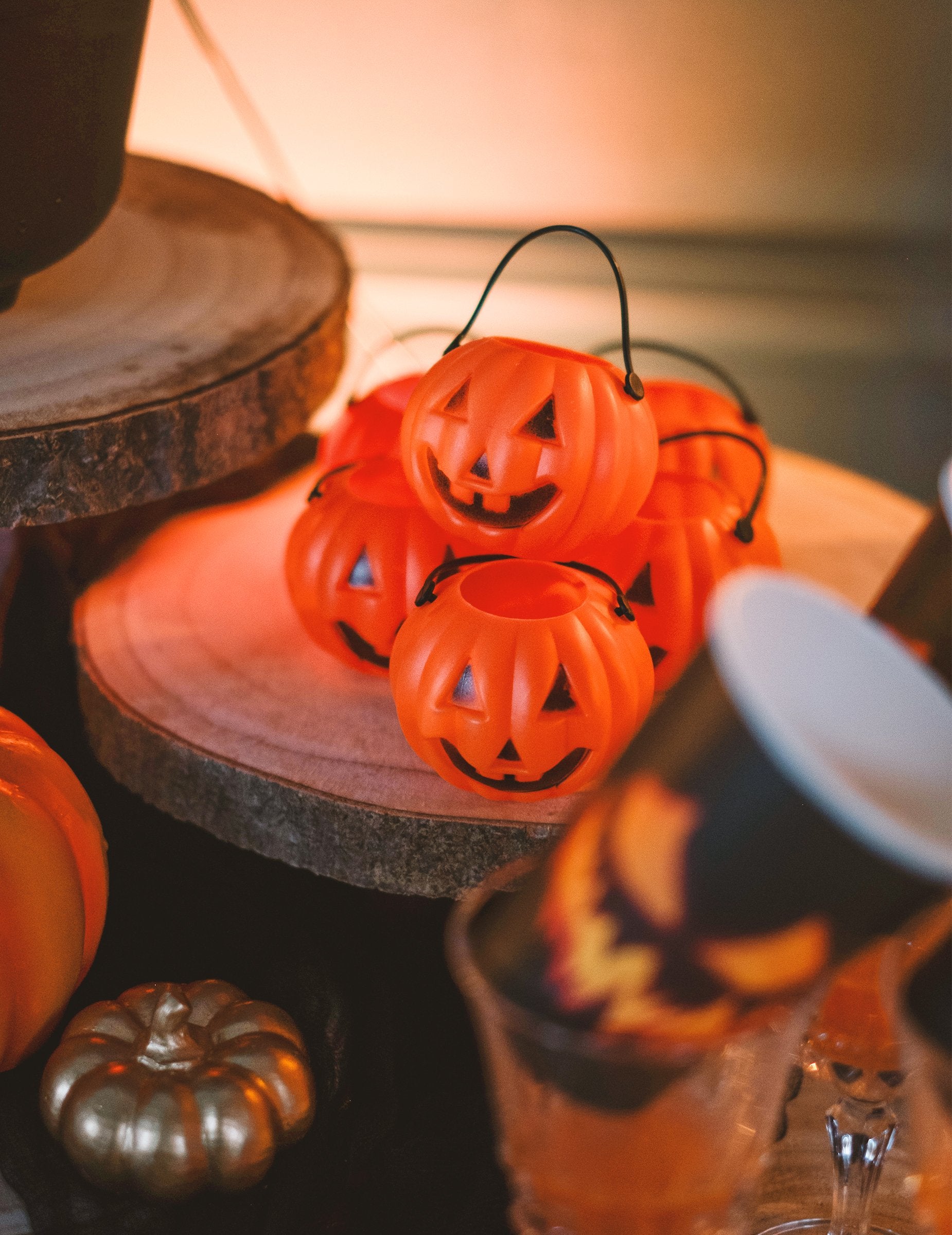 Teh 6 vedrov za noč čarovnic, ki merijo 6,5 x 5 cm so kot nalašč za okrasitev vaših prazničnih okraskov ali za zdrs v sladkarijah. Njihova klasična okrogla oblika, nasmejane lastnosti in kontrastni zaključki jim dajejo ljubek videz. Zahvaljujoč njihovemu tankemu ročaju jih je enostavno obesiti ali postaviti na sredino mize. Pametna rešitev, da na svojo zabavo za noč čarovnic dodate kanček fantazije.